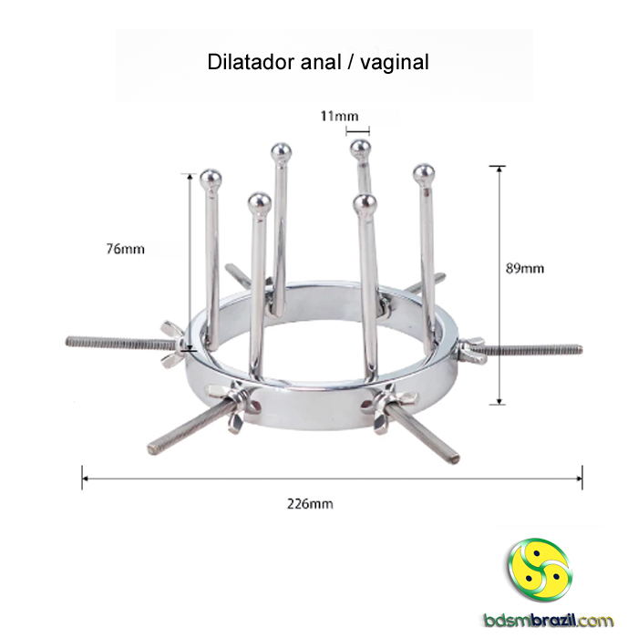 Diâmetro inicial: 2,5 cm Diâmetro aberto: 10,5 cm Penetráveis: 11 cm Material: Aço Inoxidável.
